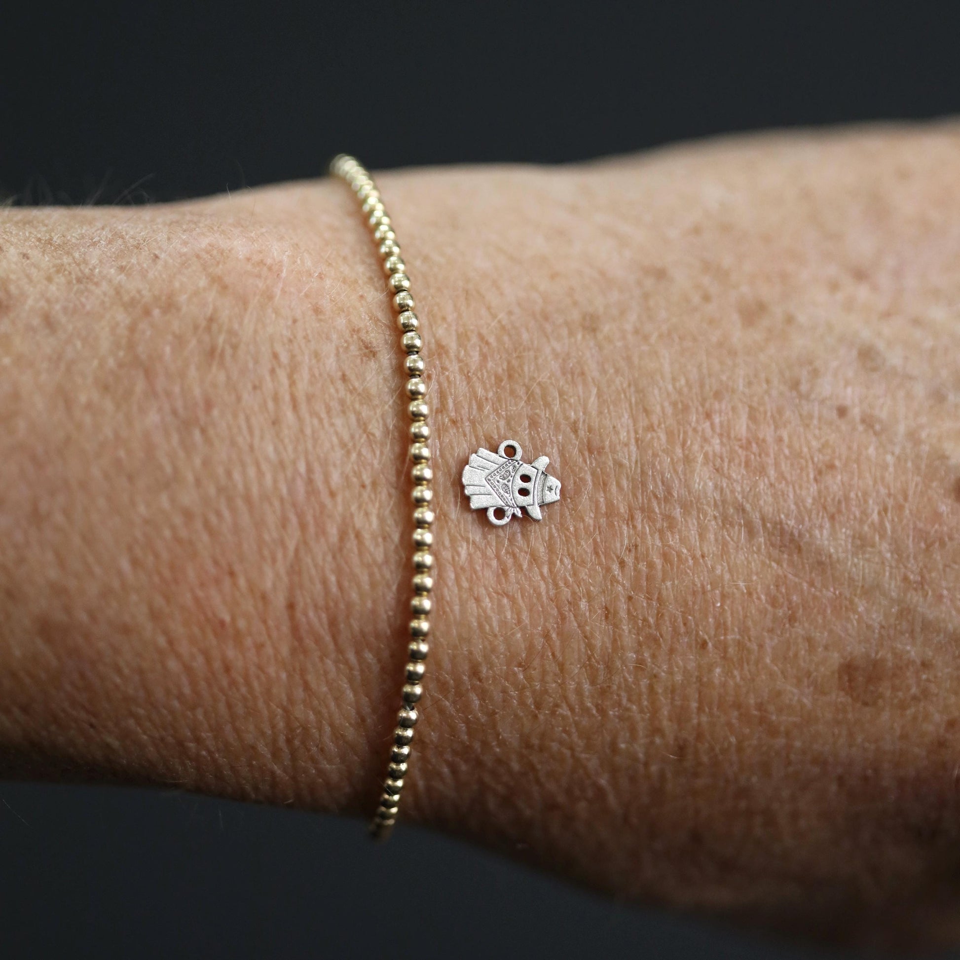 This Halloween sheriff cowboy ghost connector charm is the perfect addition to your jewelry-making collection. Featuring a playful ghost wearing a cowboy hat with sheriff details, this connector can be used as a pendant, bracelet link, or necklace charm. Crafted from high-quality 14k Gold Filled (also available in sterling silver), it's ideal for creating western, spooky, and Halloween-inspired jewelry.