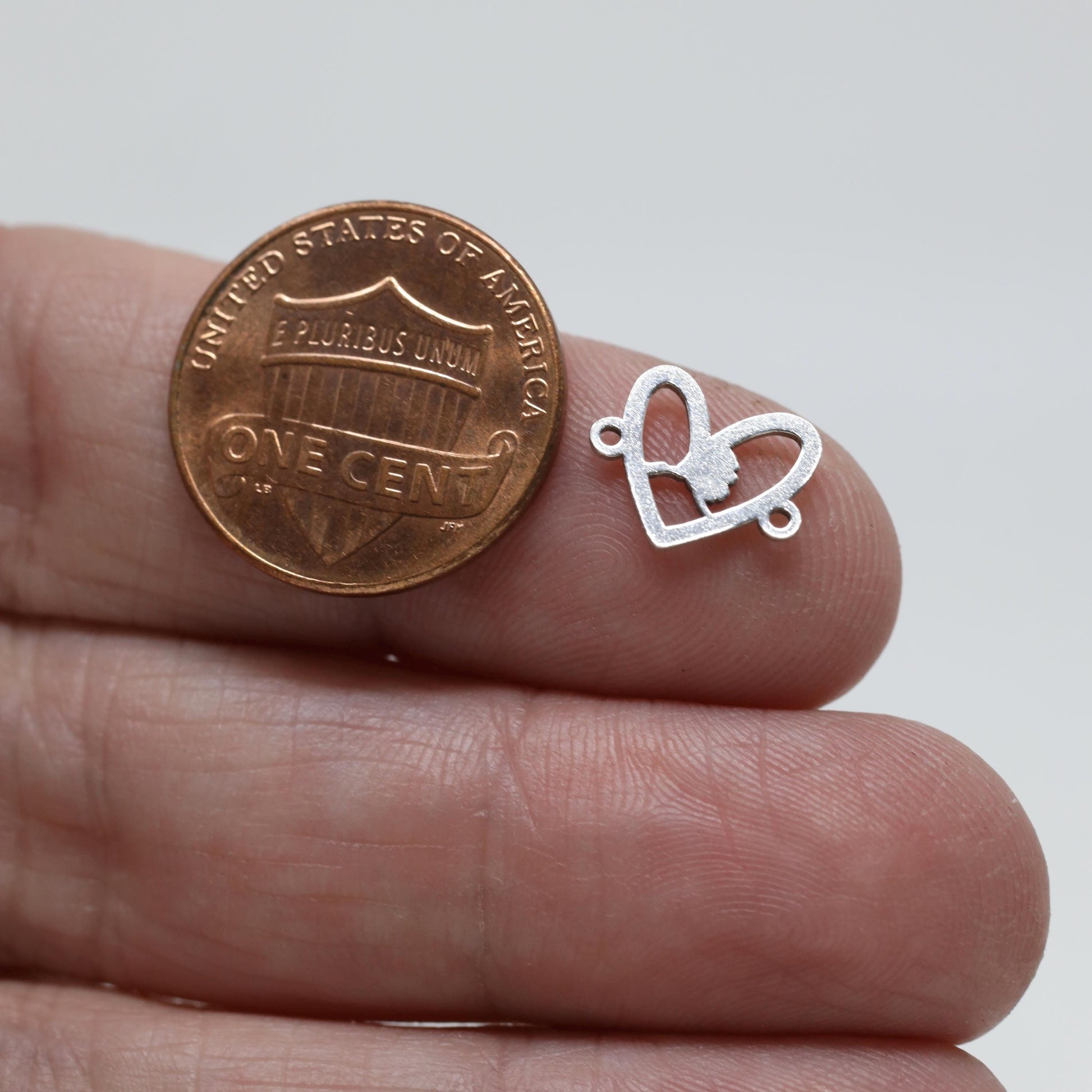 Size: 11.5mm wide (including loops) x 8.4mm tall x 0.85mm thickness (20gauge)