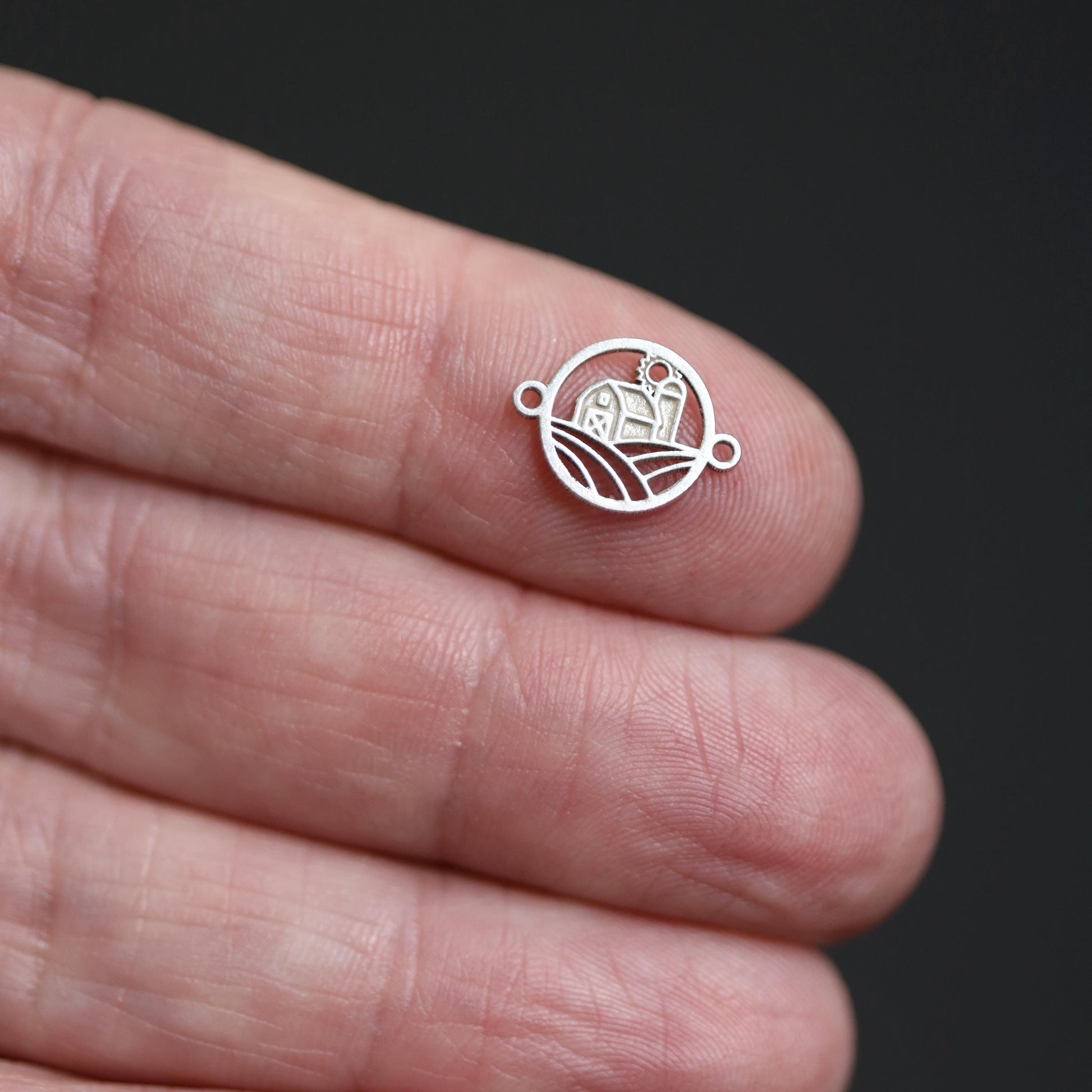 Barn Cutout Connector Charm Farmhouse Jewelry Link for Rustic Handmade Designs Sterling Silver or 14k Gold Filled