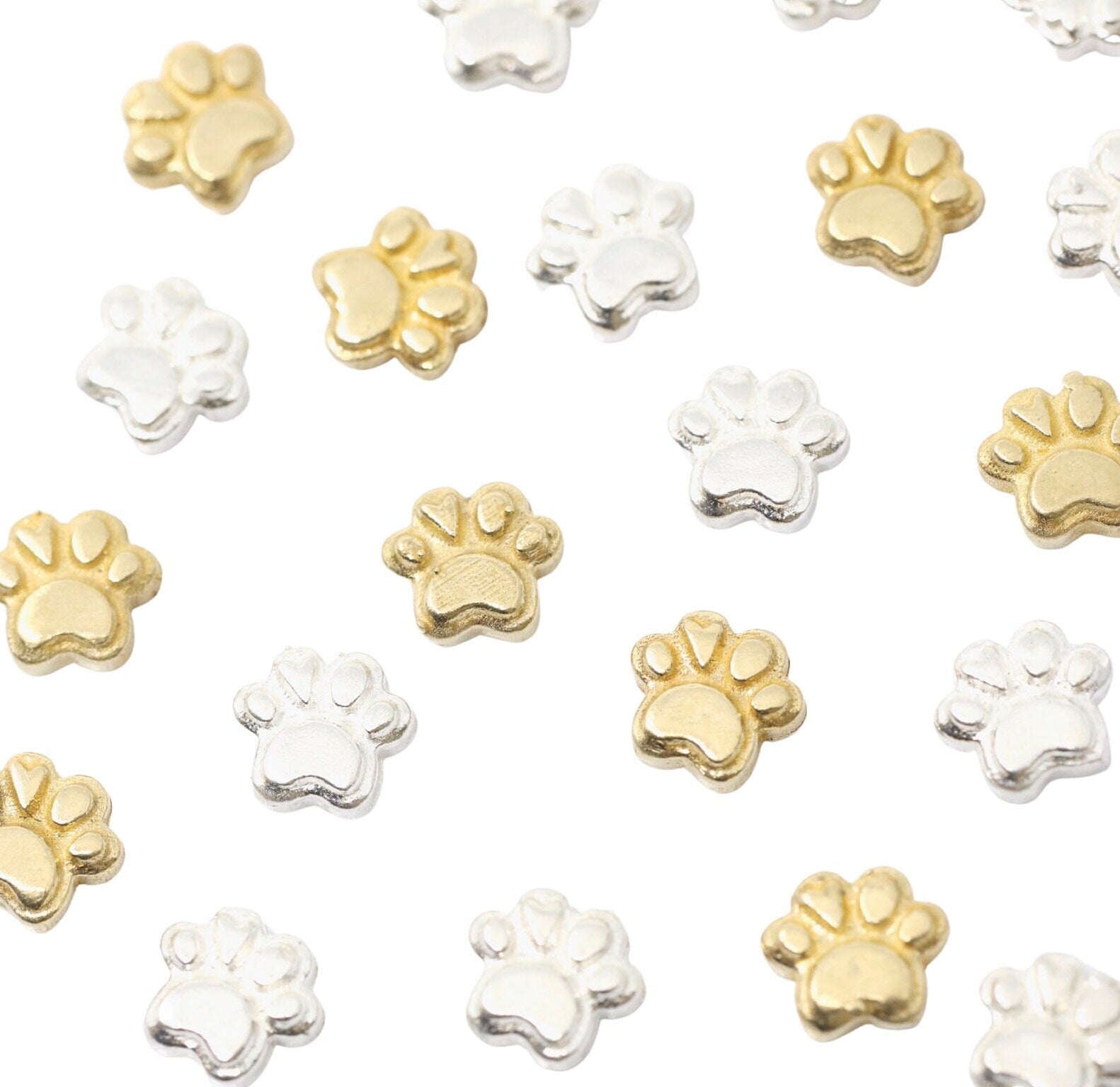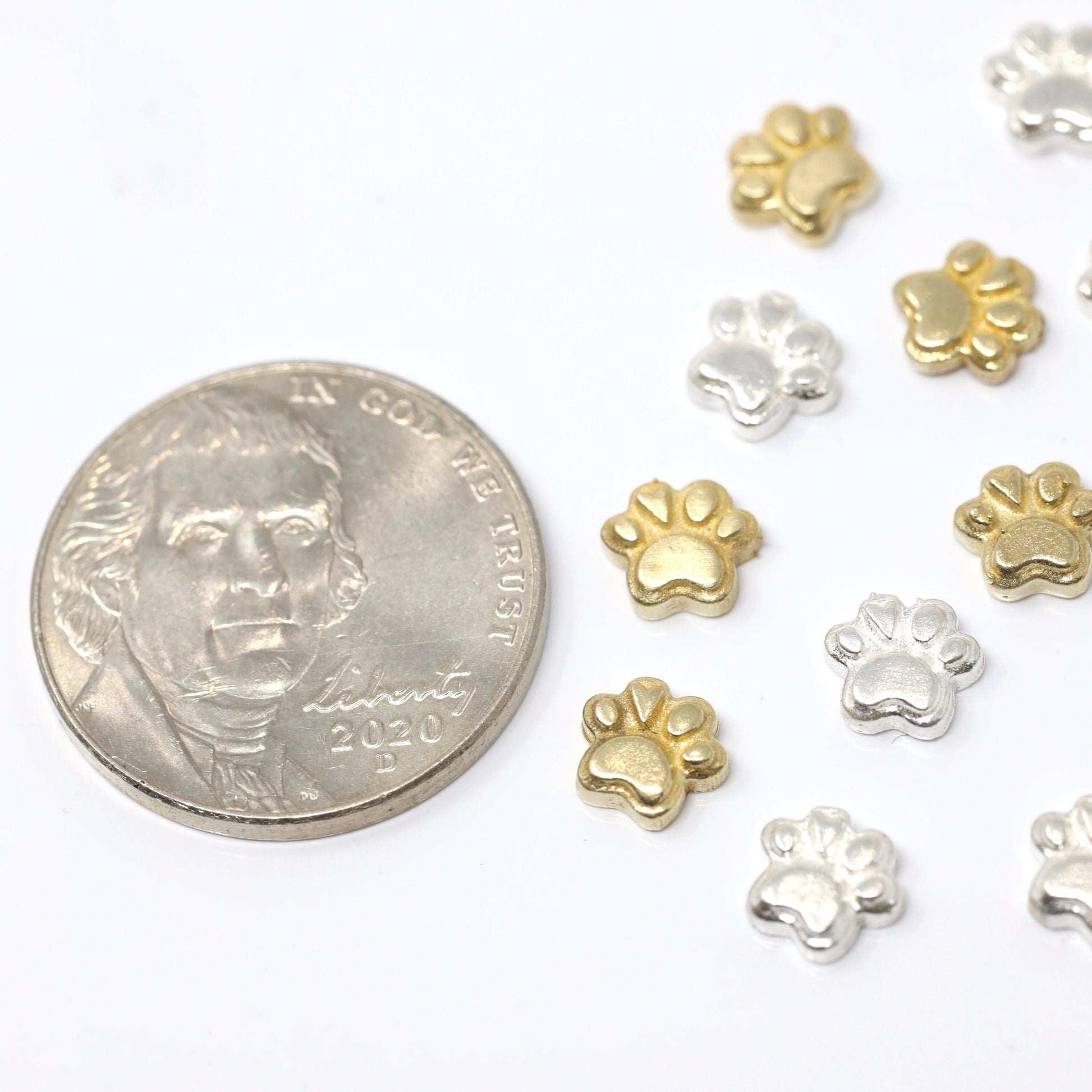 Cat Paw Heart Animal Dog Accent Embellishments in Sterling Silver or Brass - Soldering and Jewelry Making Components
