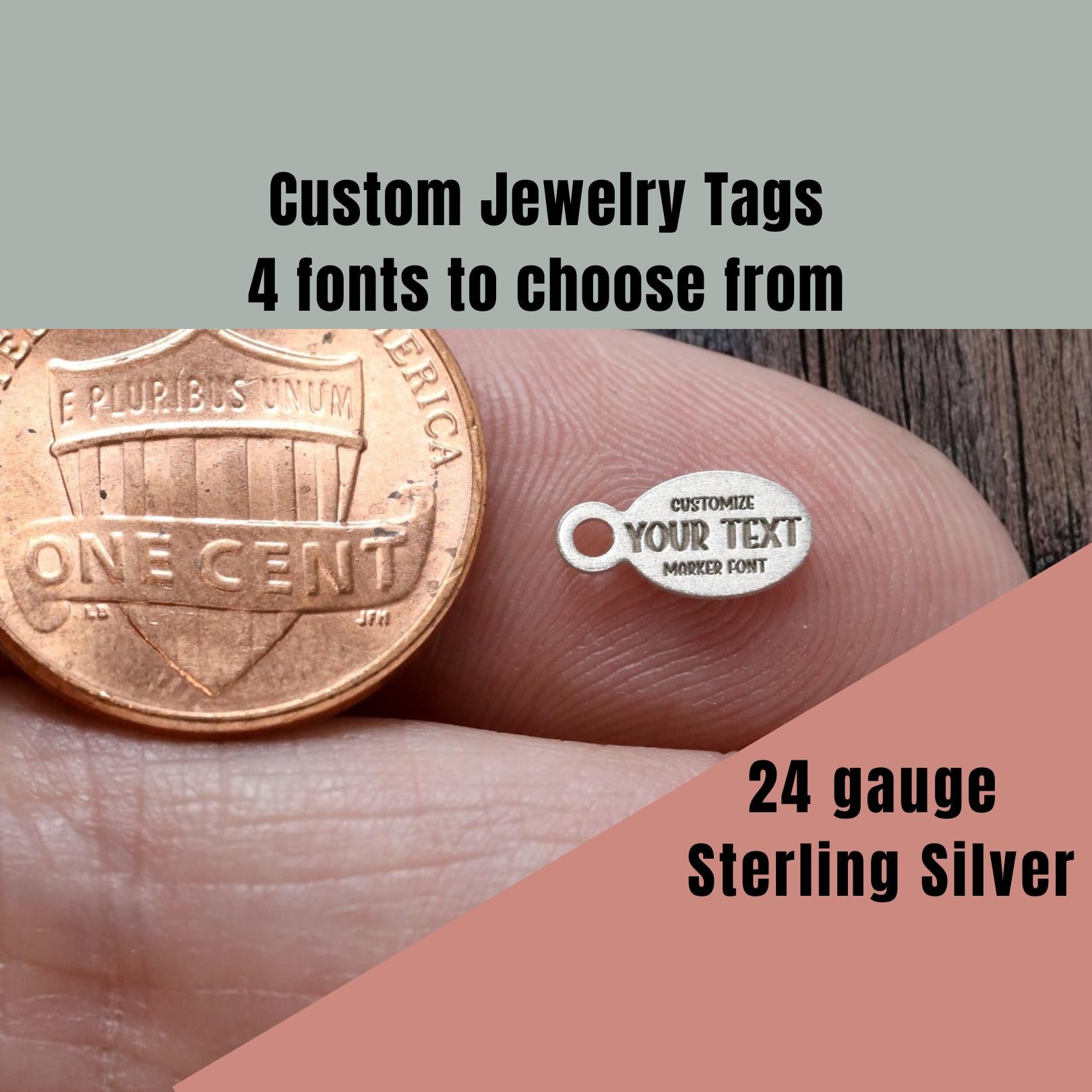 Custom Personalized Oval Jewelry Tags - Sterling Silver - Choose from 4 font options - DIY Jewelry Supplies & Findings Components