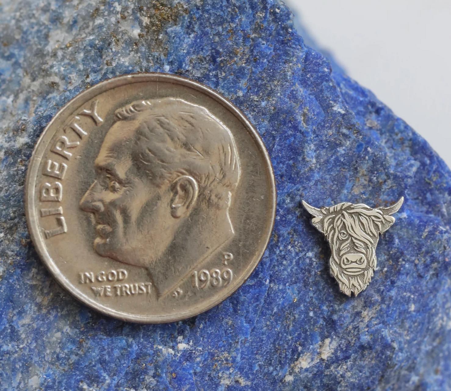 Highland Cow Detailed Accent Soderable Charm in Sterling Silver - Jewelry Making Components