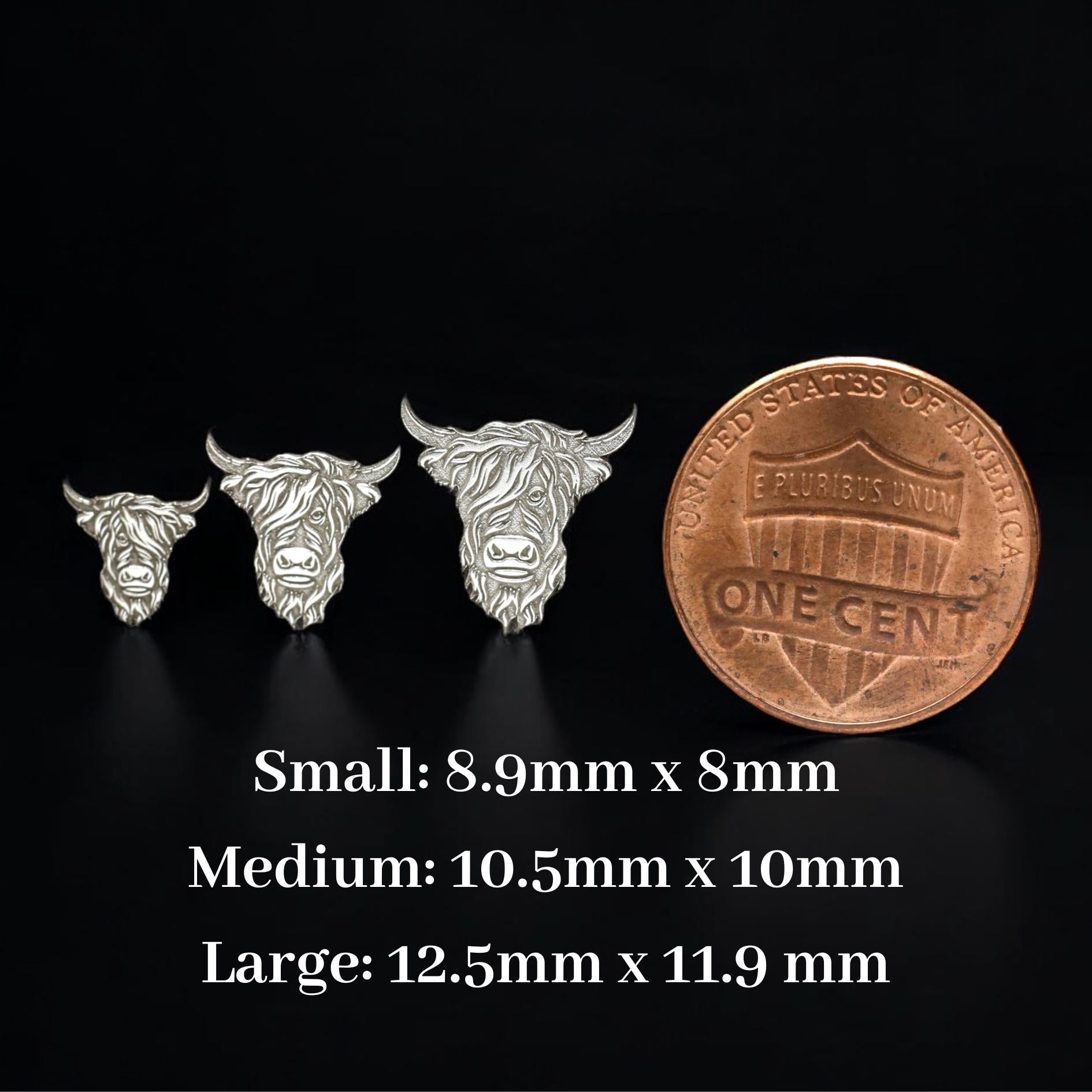 Highland Cow Detailed Accent Soderable Charm in Sterling Silver - Jewelry Making Components Small Medium Large