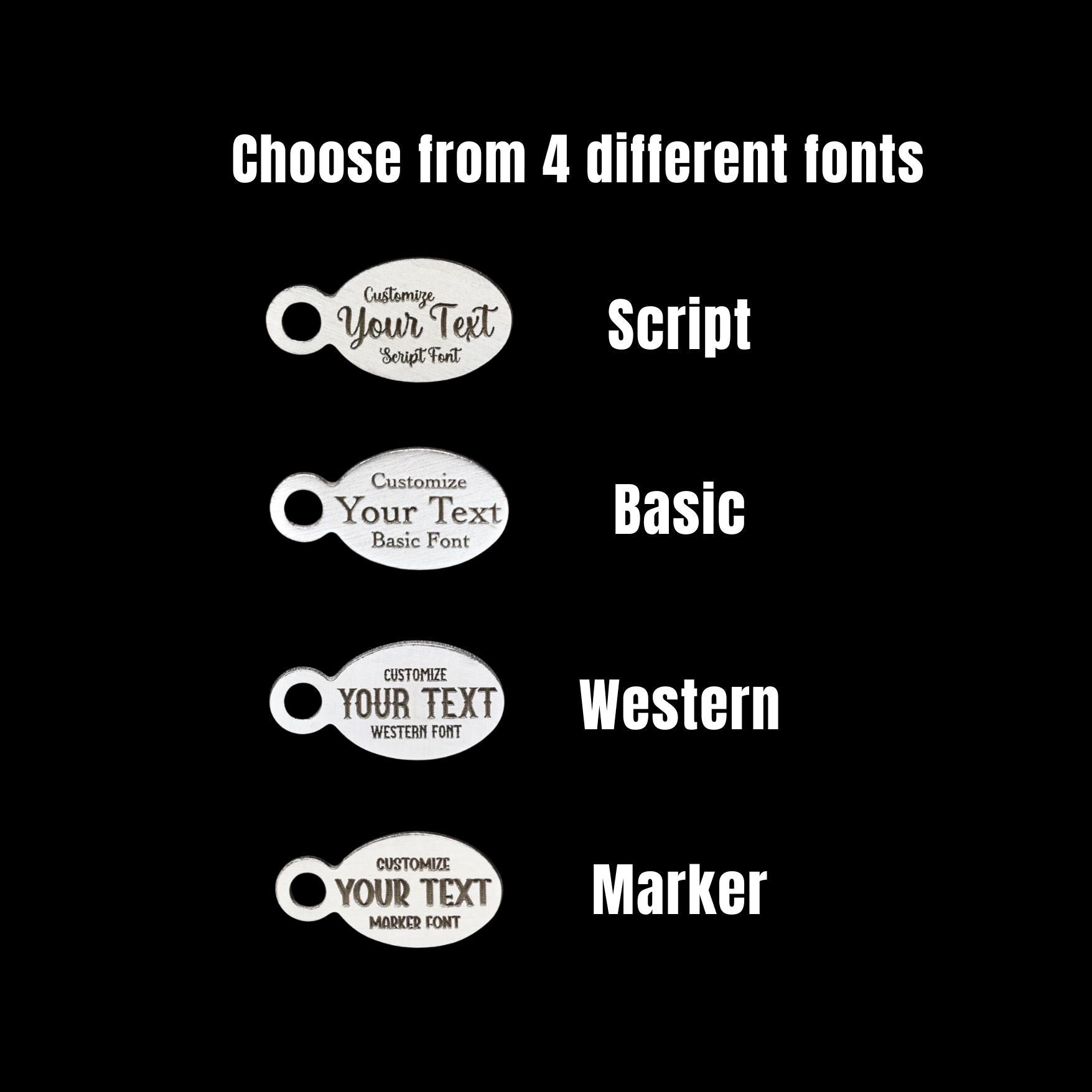 Customize jewelry tags with the choice of 4 fonts. Please indicate on the personalized section what you would like it to say and the font you choose. Perfect if you want a name, date or little message to attach to a jewelry design. Or if you don't have a logo yet and need a simple tag with your business name. SO many options with these! We have a different listing for a rectangle, cutout or handwriting option. Check them out!