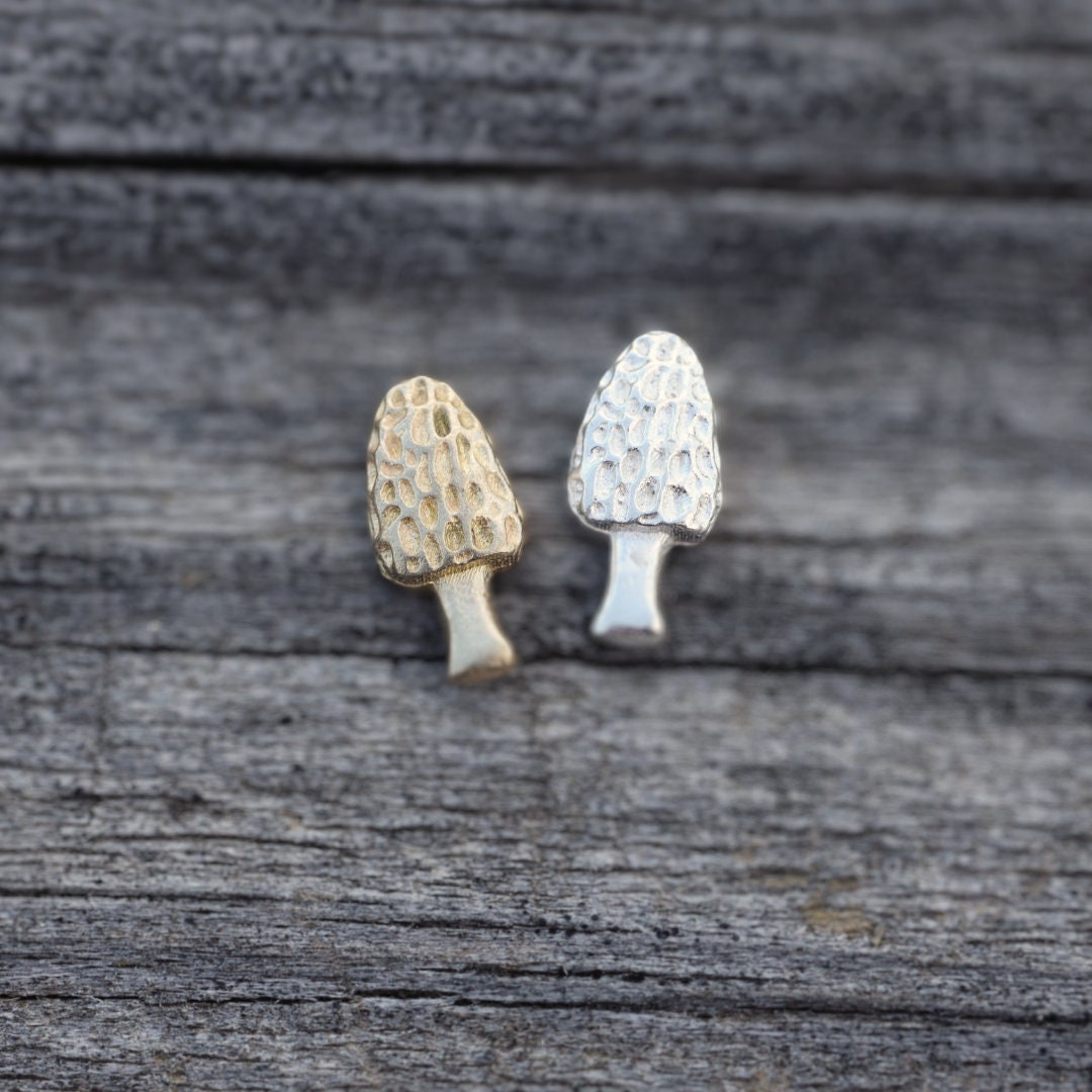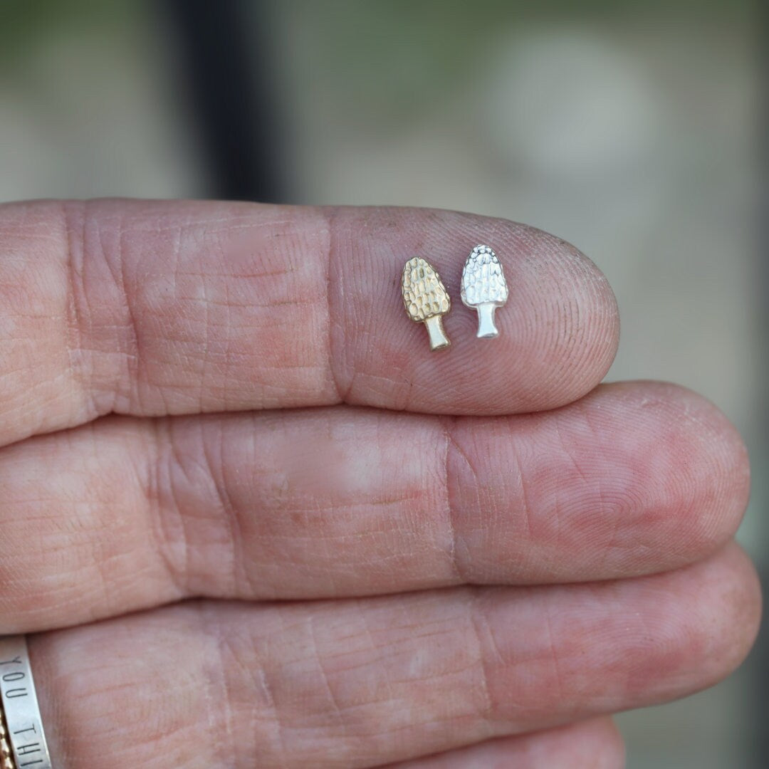 Morel Mushroom Tiny Accent Embellishments Charms in Sterling Silver or Brass - Soldering and Jewelry Making Components