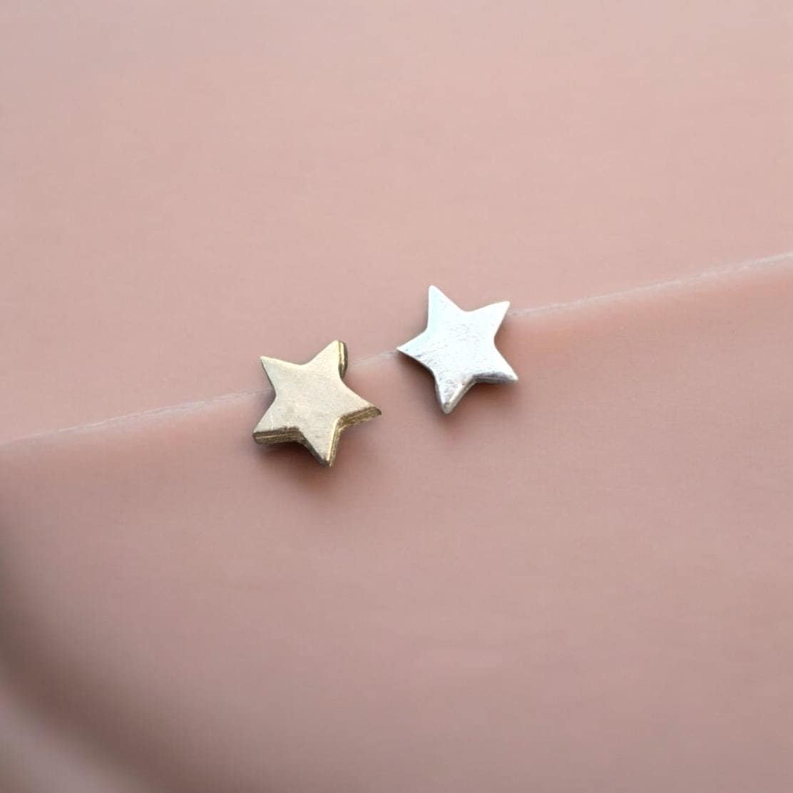Star Tiny 5 point Accent Embellishments Charms in Sterling Silver or Brass - Soldering and Jewelry Making Components