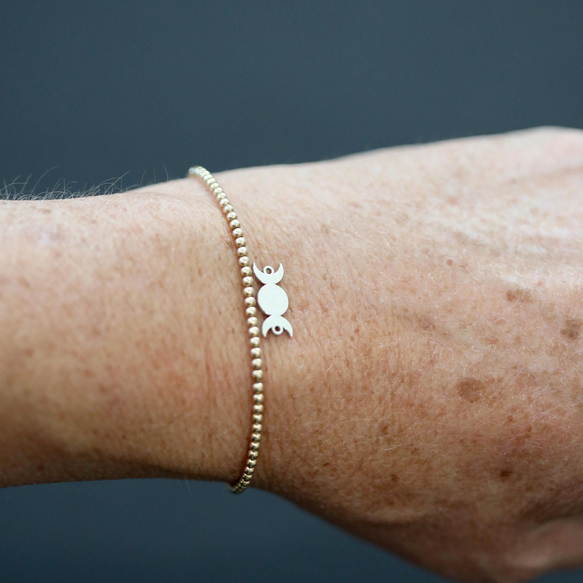This sterling silver 3 moon connector charm is a beautiful symbol of divine feminine energy and lunar phases. Featuring the triple moon design - waxing, full, and waning - it's perfect for adding a mystical, witchy, or boho vibe to your handmade jewelry.