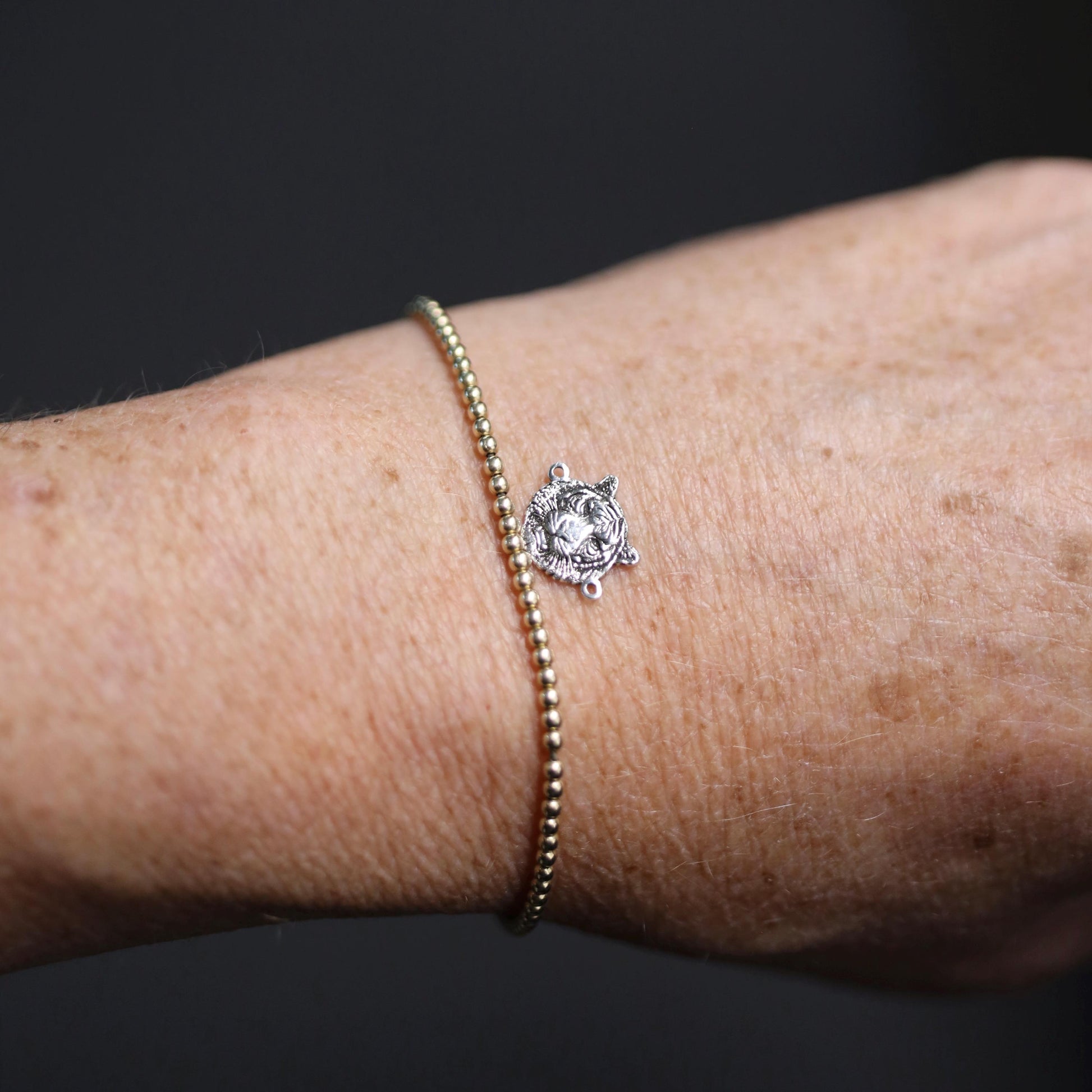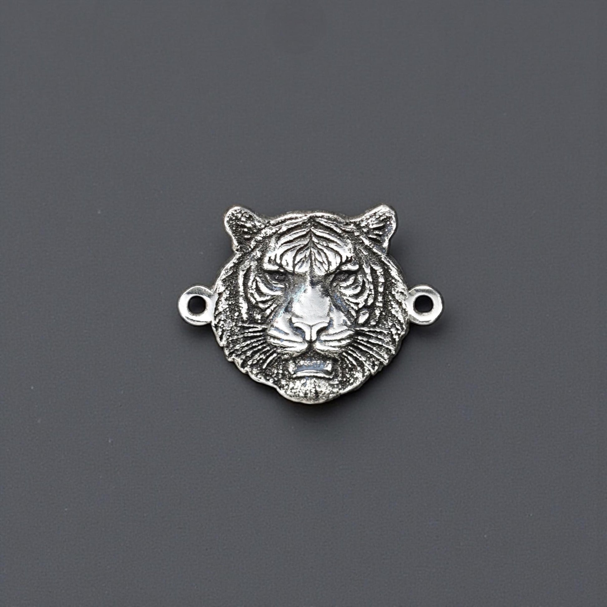 This sterling silver 3D Tiger connector charm brings dimensional detail and fierce energy to your jewelry designs. Featuring a bold, sculptural tiger head, it's the perfect focal point for bracelets or necklaces with a wildlife or jungle theme. Made from solid sterling silver, it offers quality and durability for custom creations.