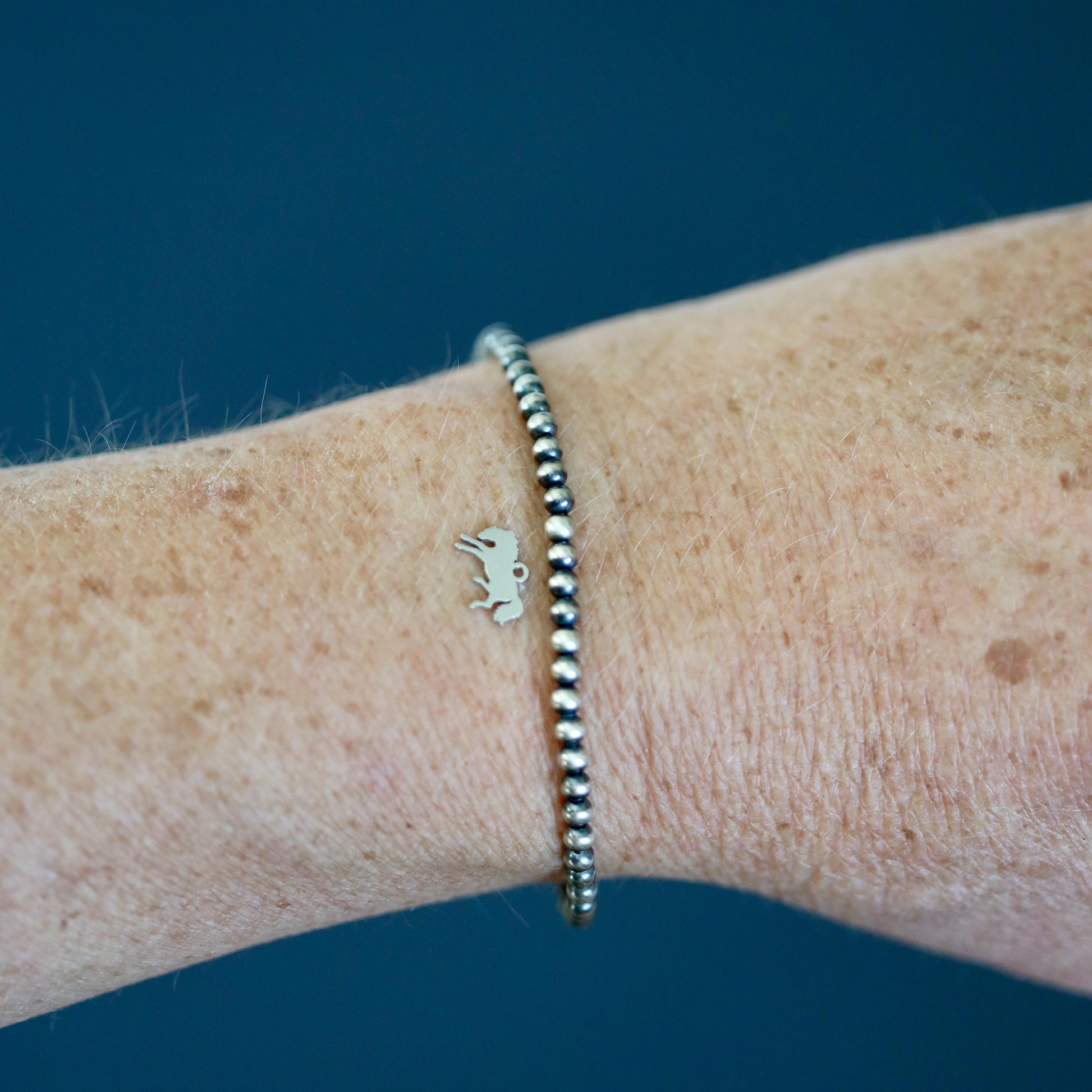 This sterling silver bucking horse dangle charm is the perfect piece for western and rodeo-inspired jewelry. Featuring a bold silhouette of a rearing horse, this small charm makes a striking pendant, bracelet drop, or necklace accent. Crafted from high-quality sterling silver, it's a stylish way to add cowboy spirit to your handmade jewelry creations.