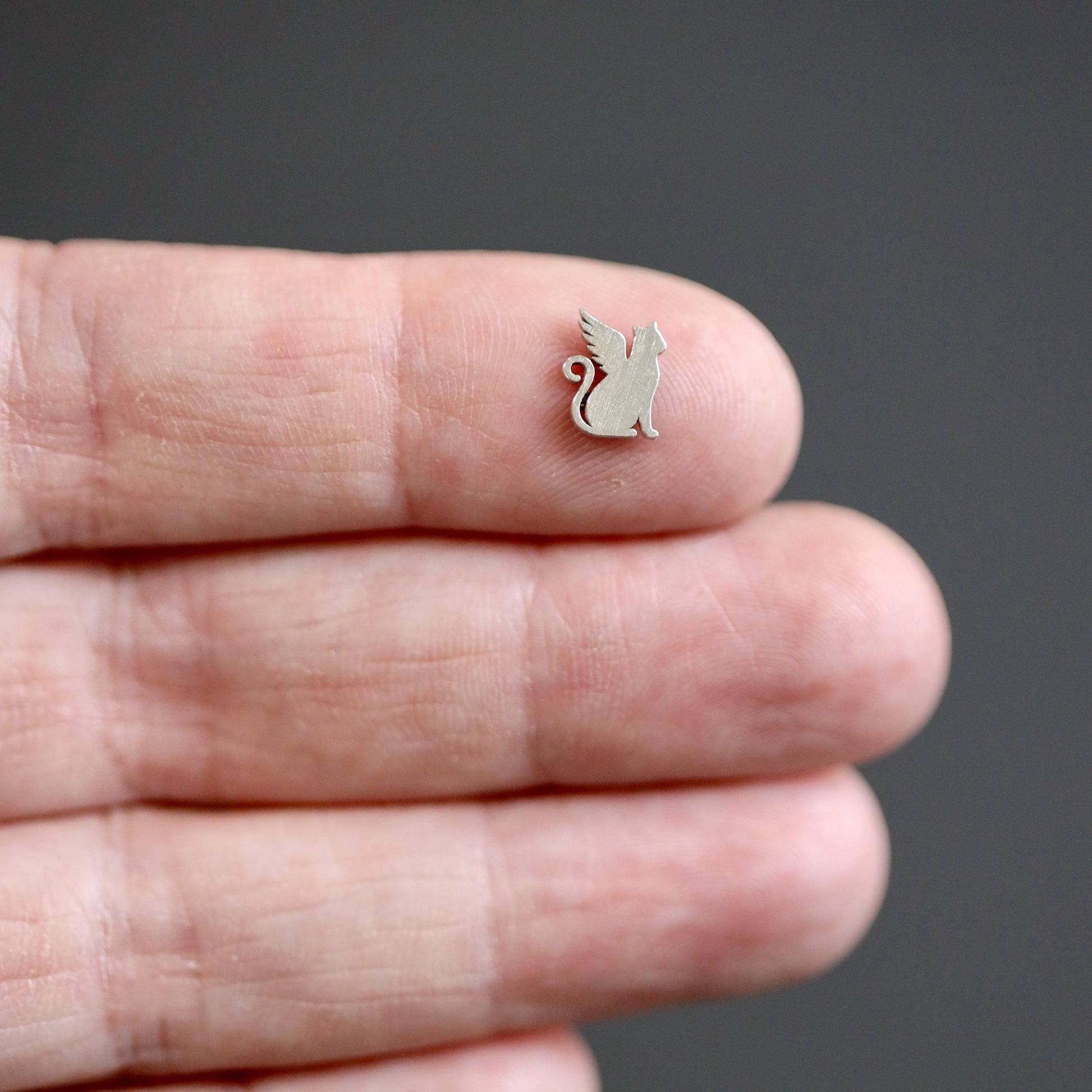 This tiny sterling silver cat angel accent charm is the perfect addition to your jewelry-making collection. Featuring a sweet cat design with angel wings, this solderable embellishment can be used in custom soldering projects or as a versatile accent for pendants, bracelets, or necklaces. Crafted from high-quality sterling silver, it's ideal for creating pet memorial, angel-inspired, and animal-themed jewelry.