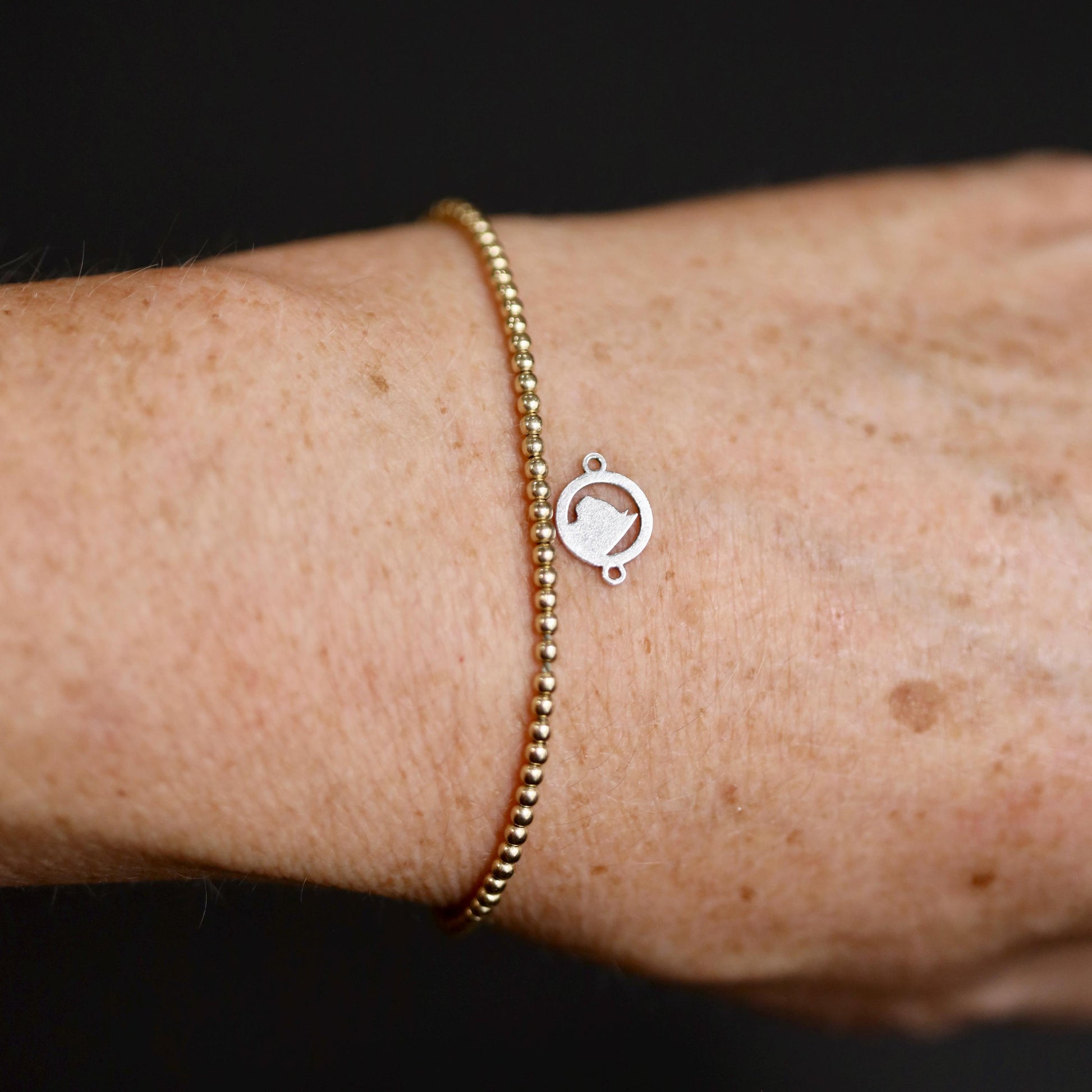 This sterling silver cat head silhouette connector charm adds a touch of minimalist feline style to your handmade jewelry. Designed with precision and balance, it’s perfect for linking between chains or beads to create bracelets, necklaces, or anklets that celebrate your love for cats.