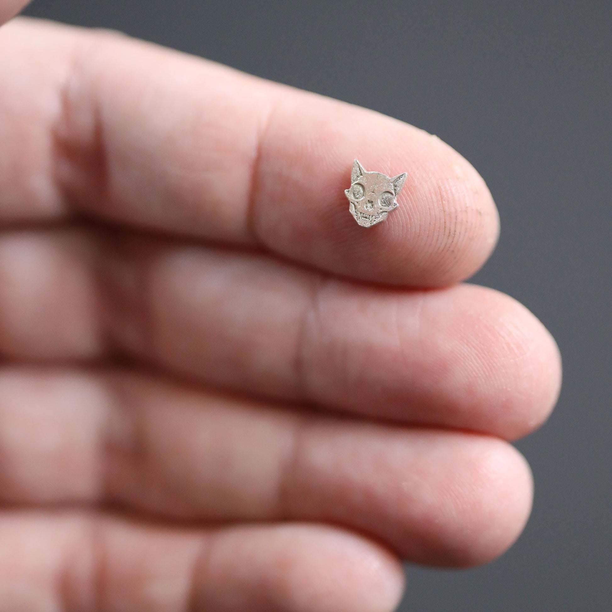 Sterling Silver Cat Skull Accent Charm • Halloween Solderable Jewelry Embellishment • Gothic Pet Accent • Sterling Silver Findings