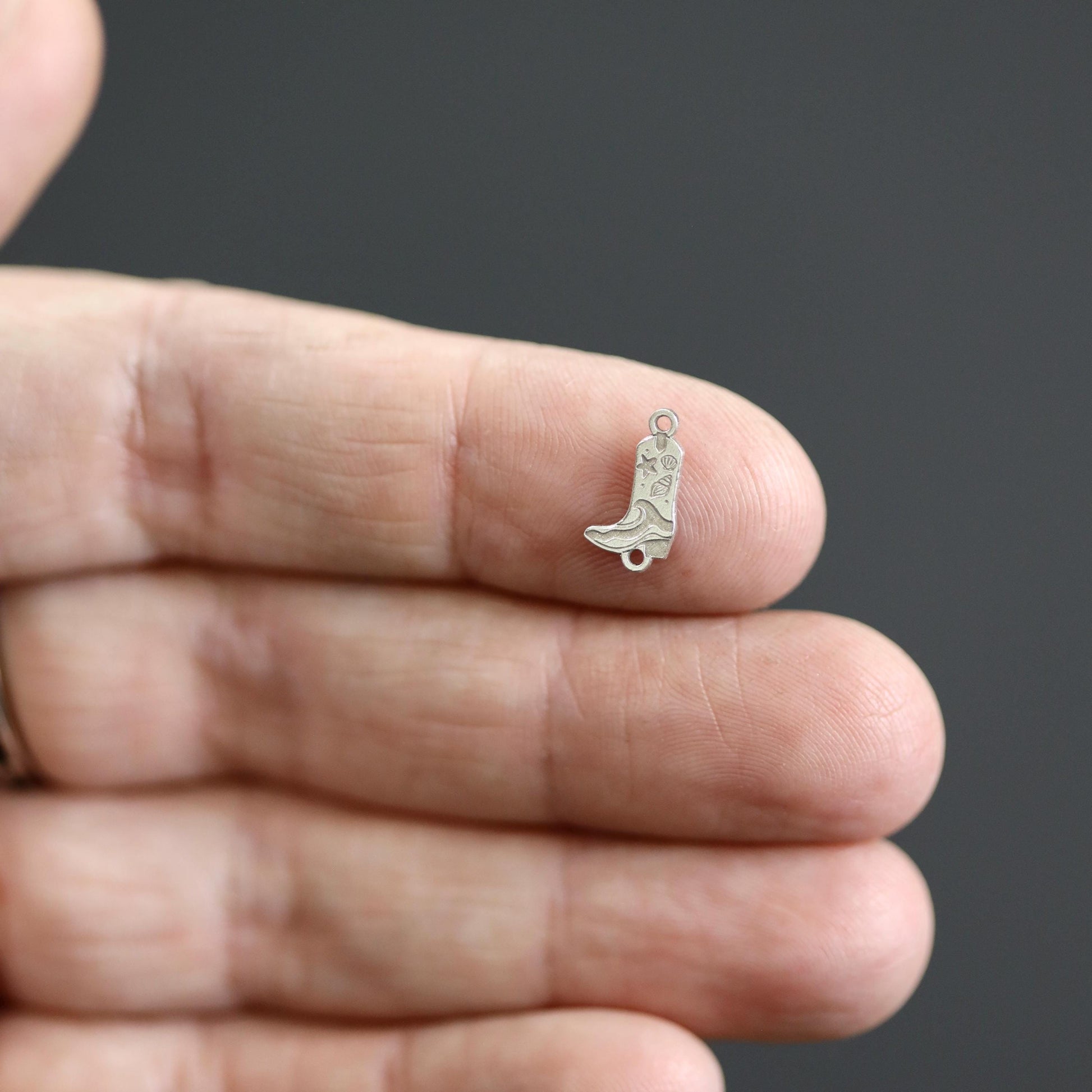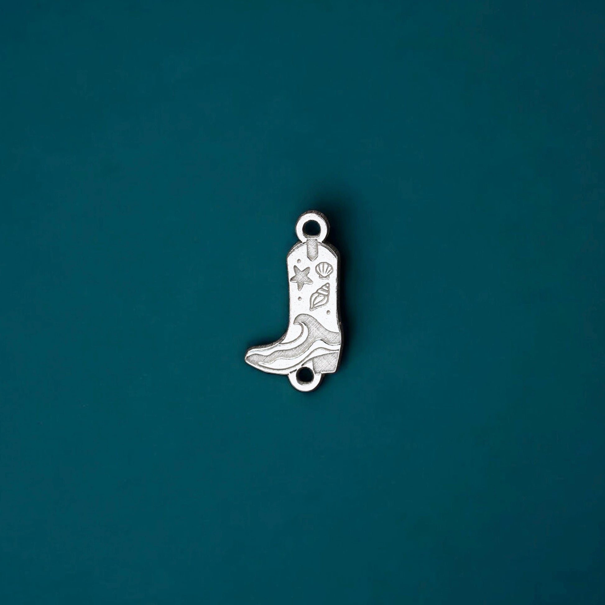 This sterling silver coastal cowgirl boot connector is the perfect addition to your jewelry-making collection. Featuring a western-style boot accented with a wave and seashell design, this unique connector blends beach vibes with cowboy charm. It can be used as a pendant, bracelet connector, or necklace charm. Crafted from high-quality sterling silver, it's ideal for creating coastal western, cowgirl, and summer-inspired jewelry.