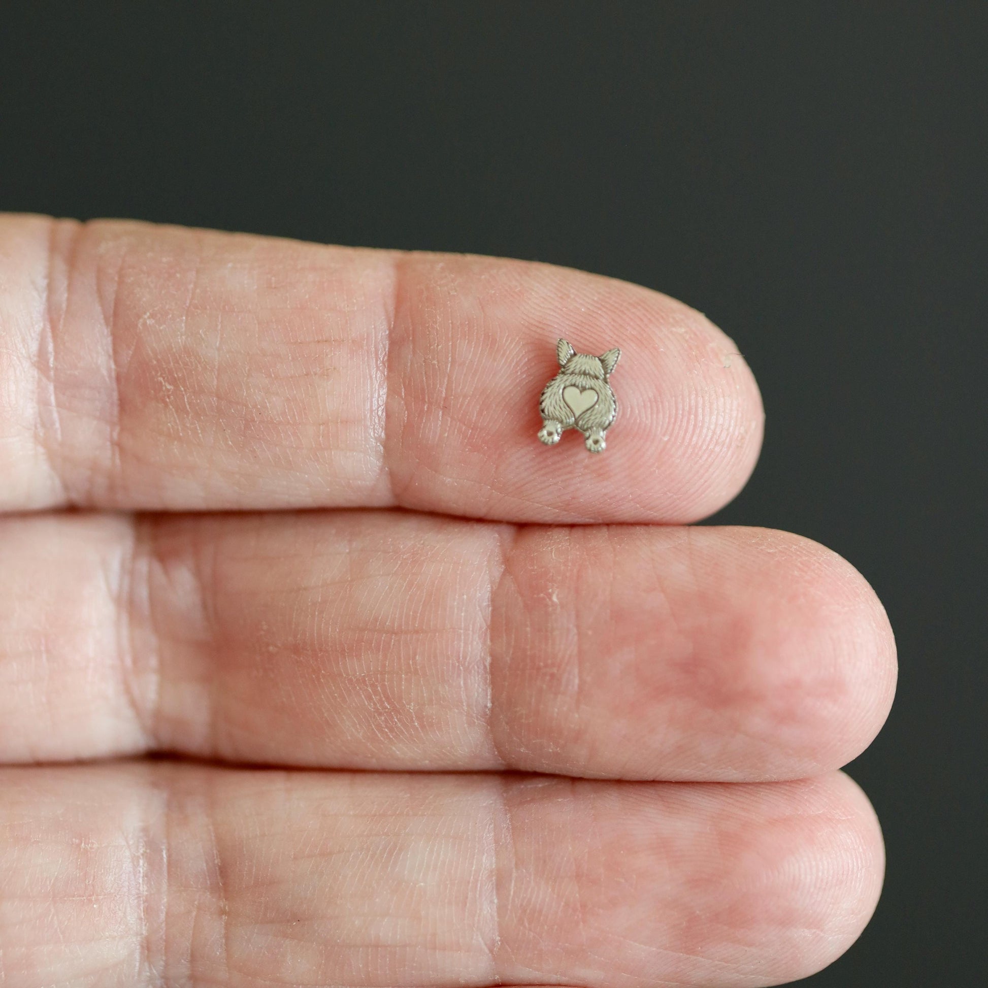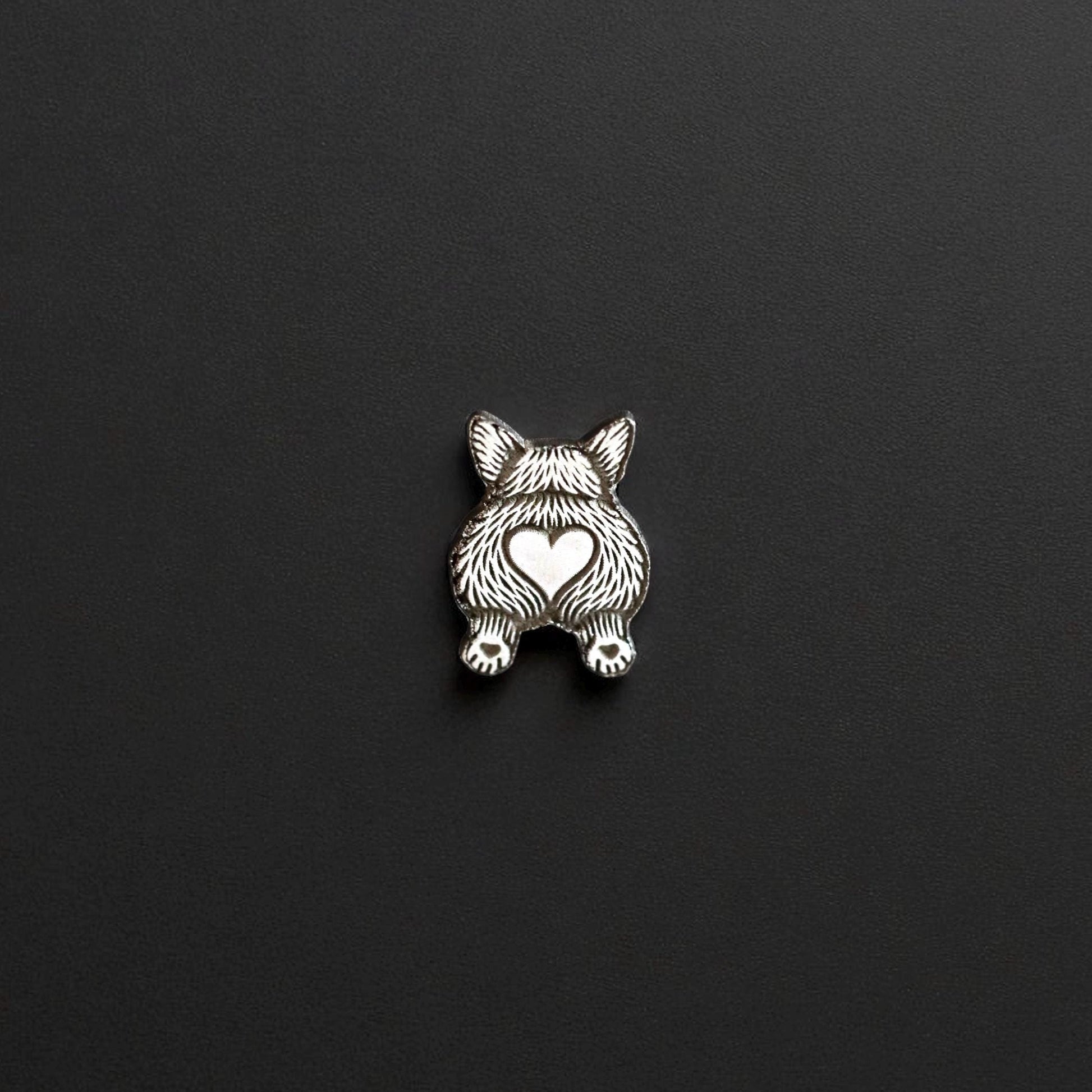 This detailed sterling silver corgi butt accent charm is a fun and playful addition to your jewelry-making collection. Featuring the unmistakable silhouette of a corgi's fluffy backside, this tiny solderable embellishment is perfect for pet lovers and dog-inspired jewelry designs.