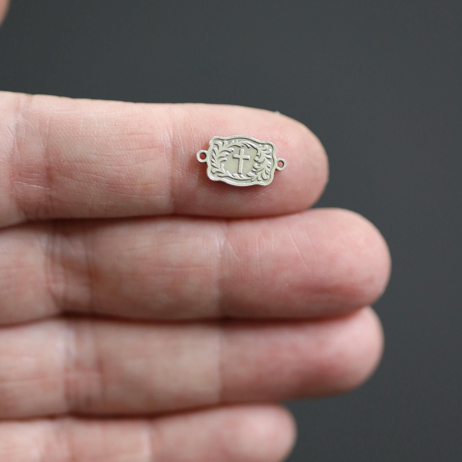 Sterling Silver Cross Belt Buckle Connector Charm • Western Jewelry Supplies • Faith Pendant Link • Sterling Silver Findings