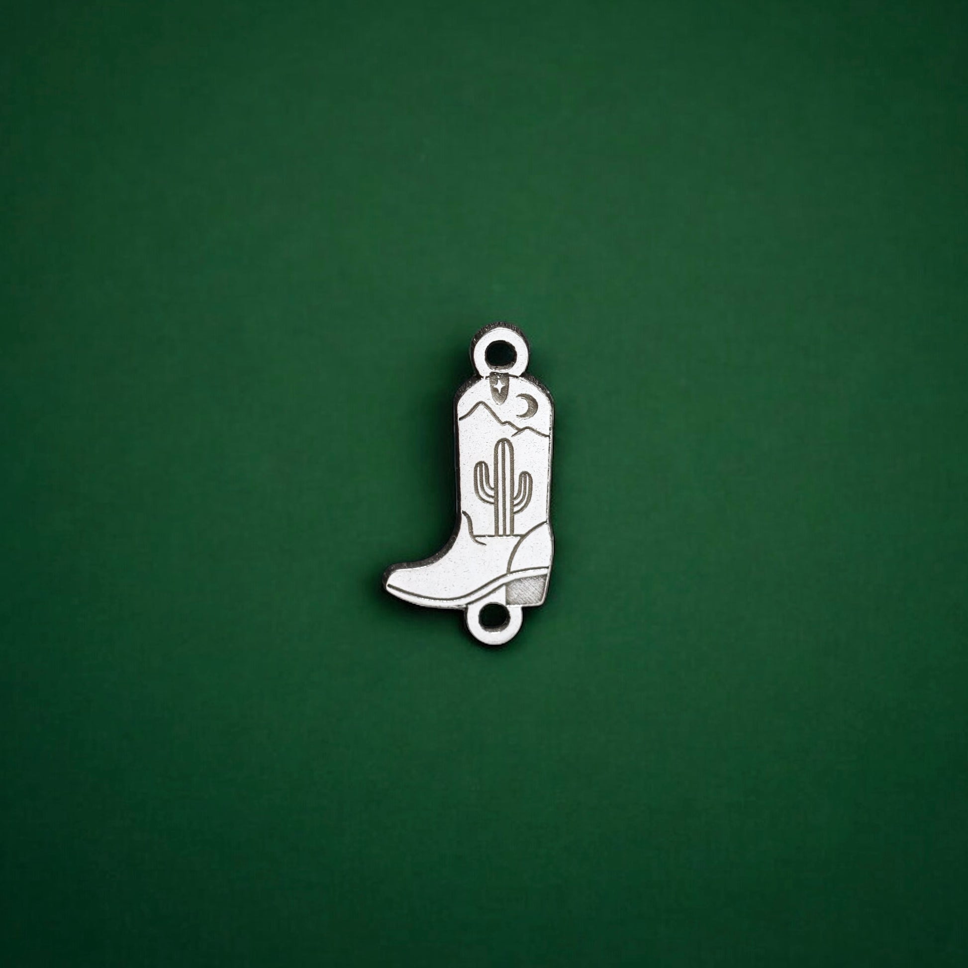 Sterling Silver Desert Cowboy/Cowgirl Boot Connector Charm – Cactus & Moon Design