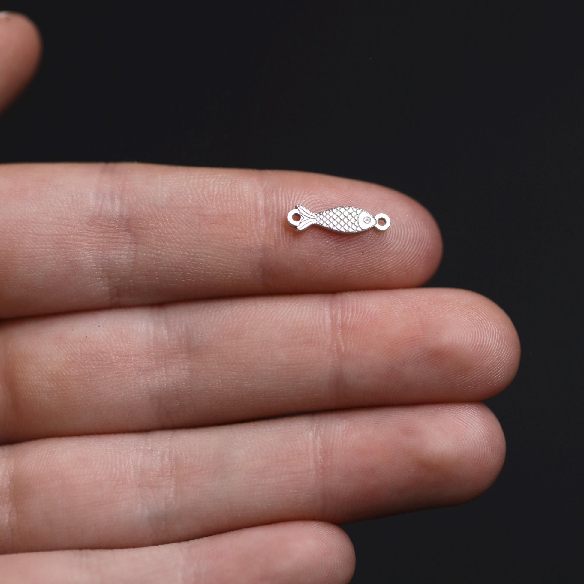 Sterling Silver Fish Connector Charm • Fishing Jewelry Supplies • Ocean Pendant Link • Sterling Silver Findings