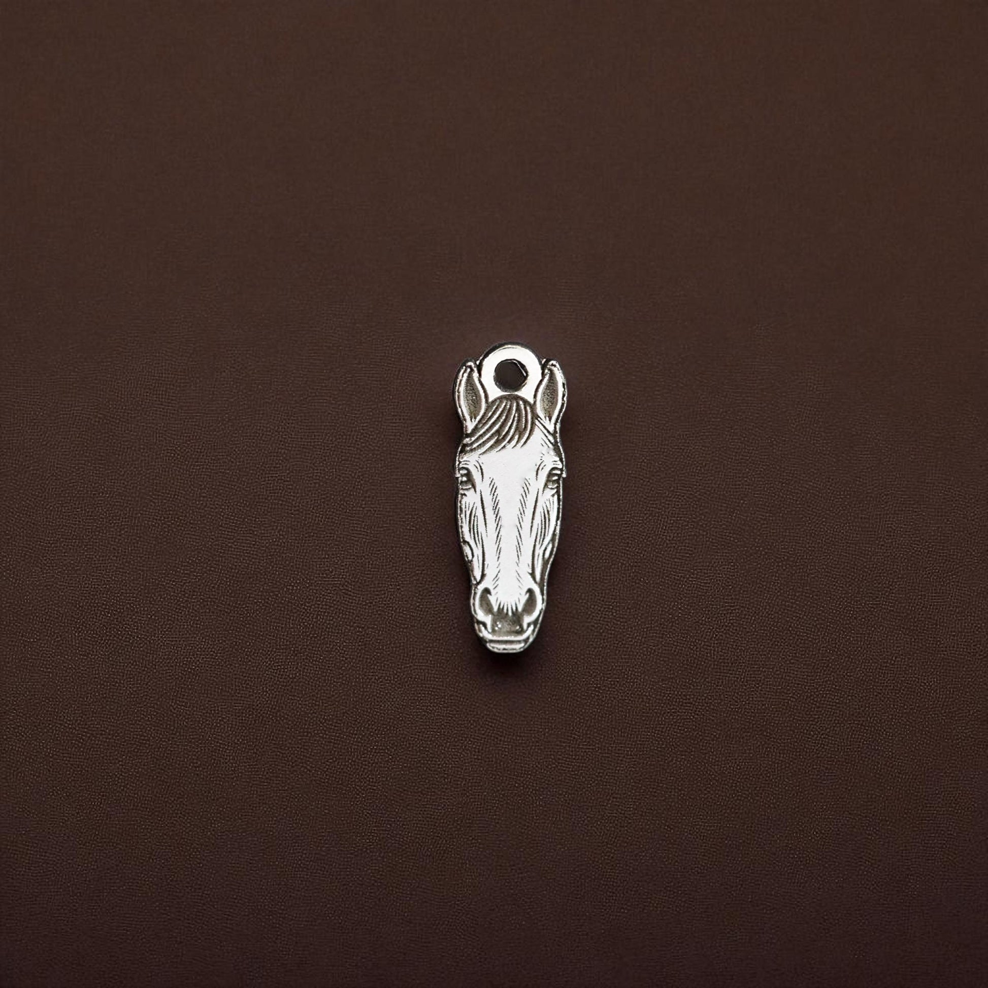 This sterling silver horse face dangle charm is a sleek and detailed piece designed for equestrian-inspired jewelry. Featuring the elegant profile of a horse, this charm is perfect for creating accessories for horse lovers, riders, and country lifestyle enthusiasts.