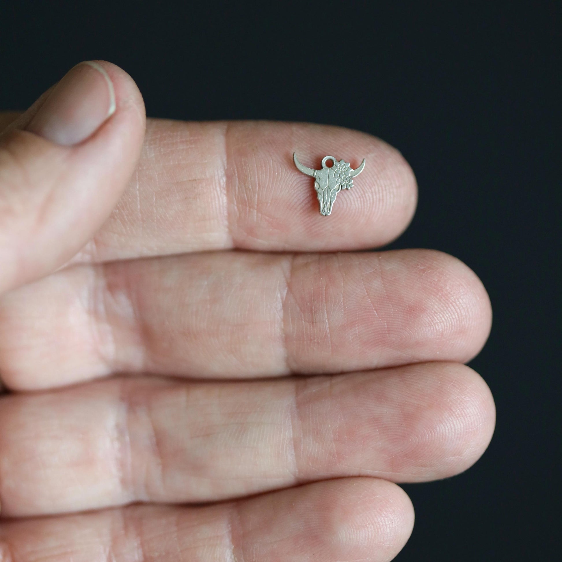 ✨ Sterling silver longhorn skull with succulents dangle charm