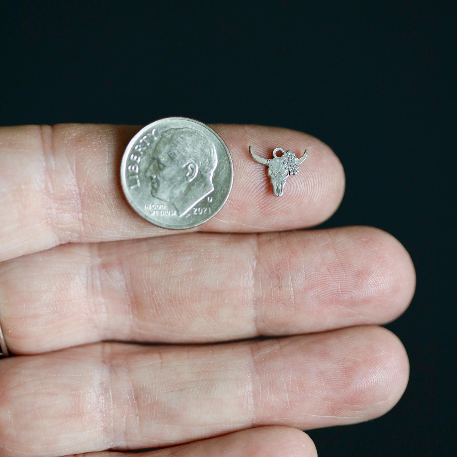 This sterling silver longhorn skull with succulents dangle charm is a striking mix of rustic western and boho botanical style. Featuring a detailed longhorn skull accented with succulents, this charm makes a bold and trendy focal point for your handmade jewelry.