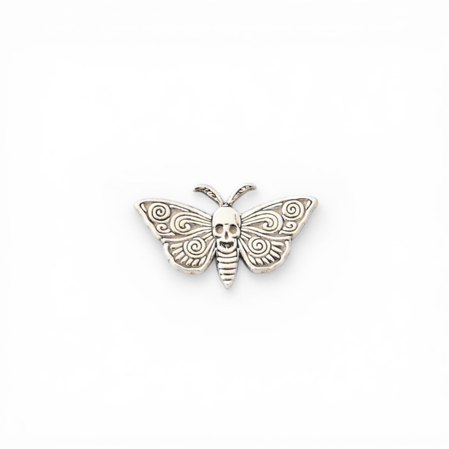 This sterling silver moth skull accent charm is a striking piece for gothic and spooky-inspired jewelry designs. Featuring a moth with an intricate skull motif, this embellishment adds dark elegance to your handmade creations.