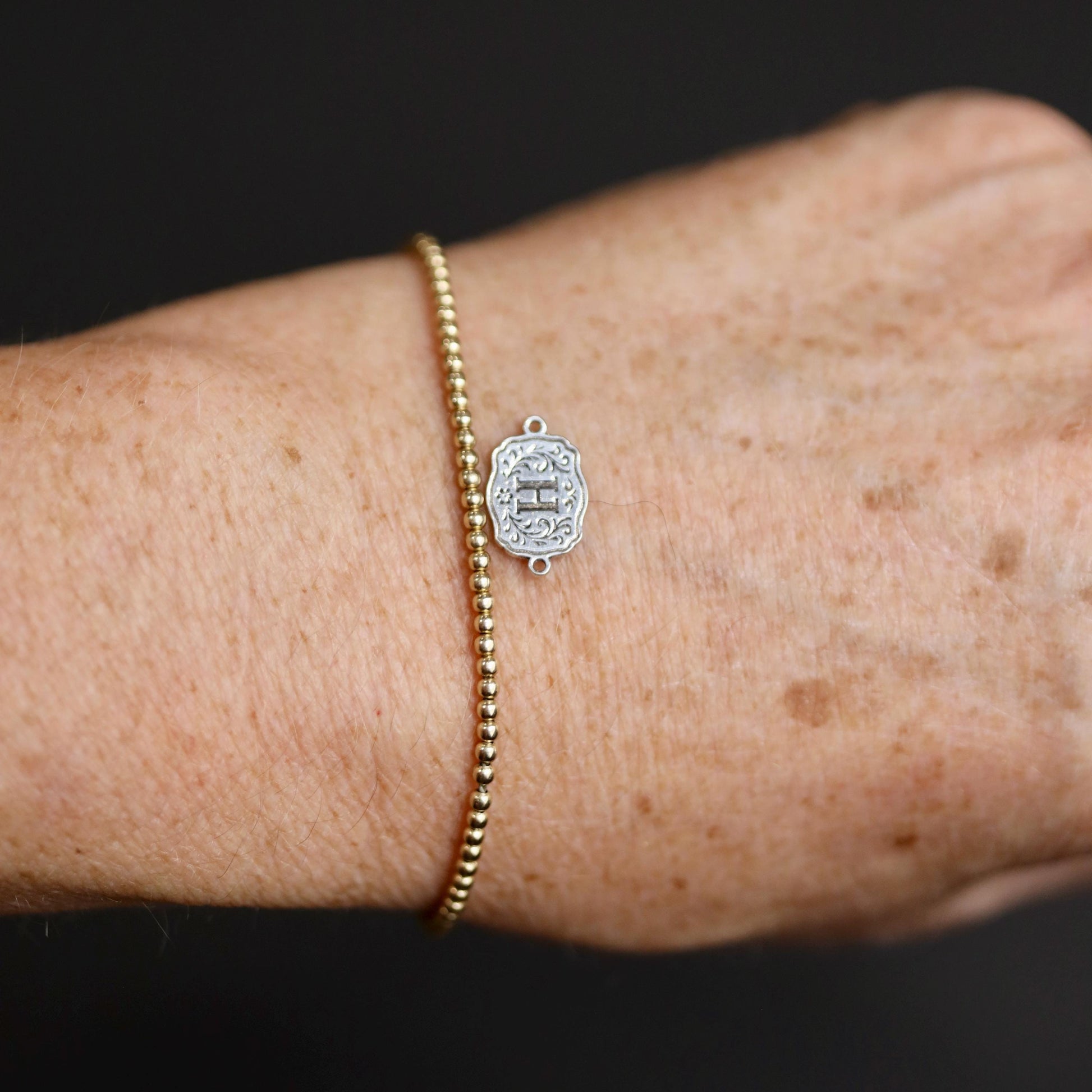Bring a touch of western flair to your jewelry creations with this sterling silver personalized floral belt buckle connector charm. Featuring a detailed belt buckle design, this connector can be personalized with your initial and used as a pendant, bracelet link, or necklace charm. Crafted from high-quality sterling silver, it’s ideal for creating custom, western-inspired, and cowboy-themed jewelry.