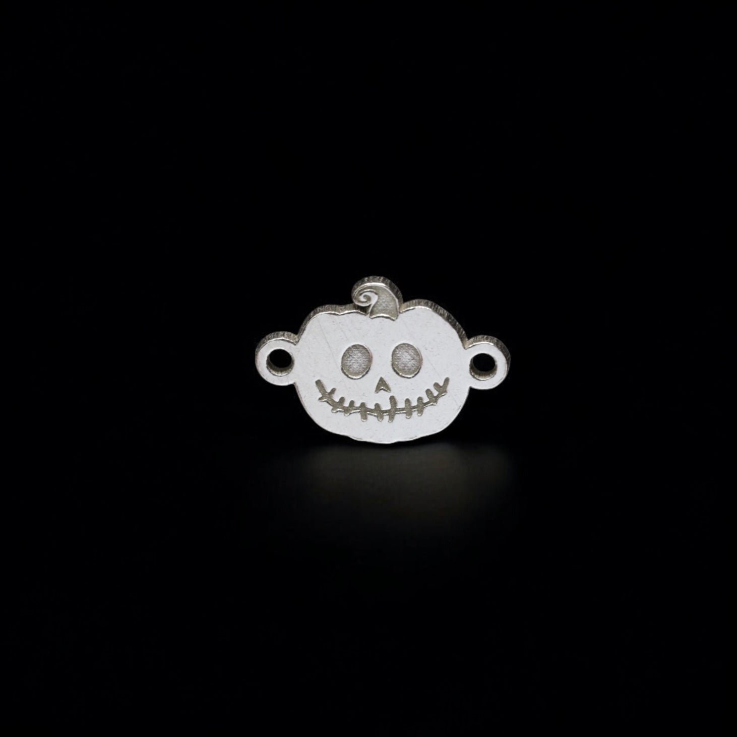 Show your style with this sterling silver pumpkin connector charm. Perfect for bracelets, necklaces, permanent jewelry, or seasonal fall creations.