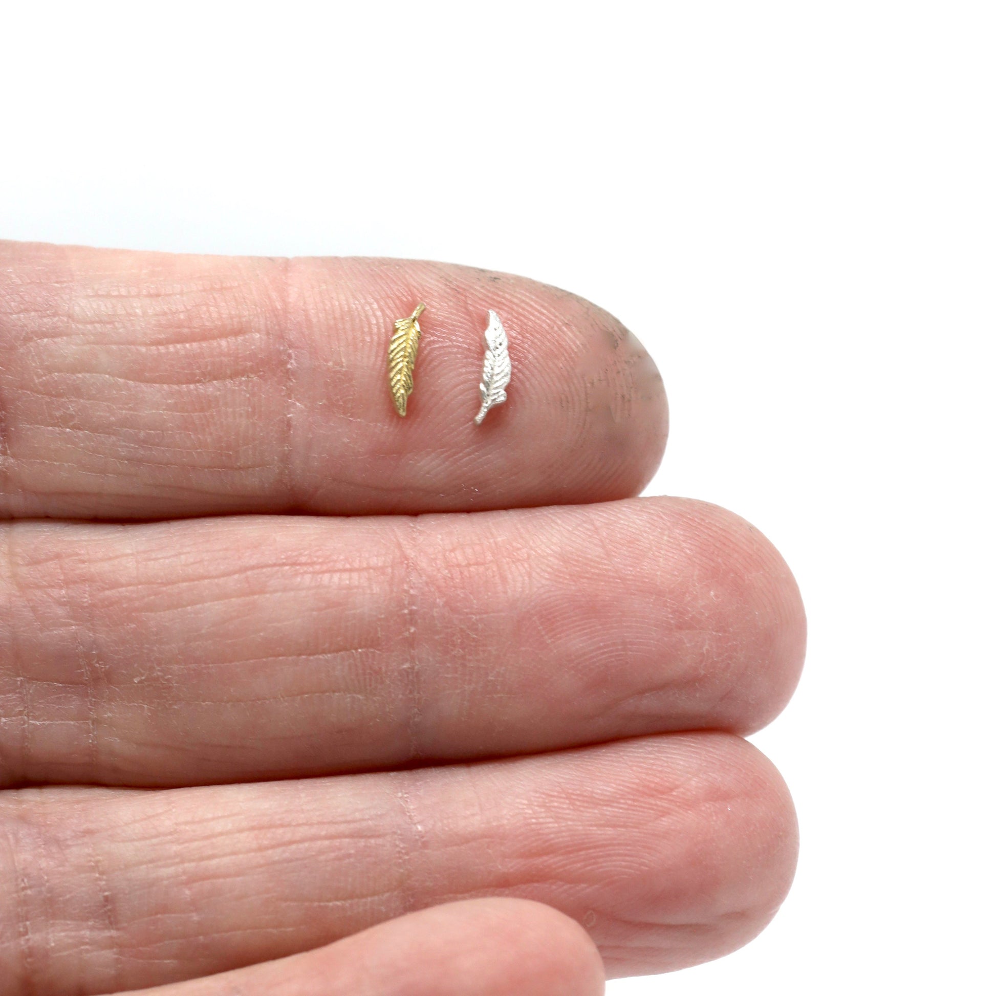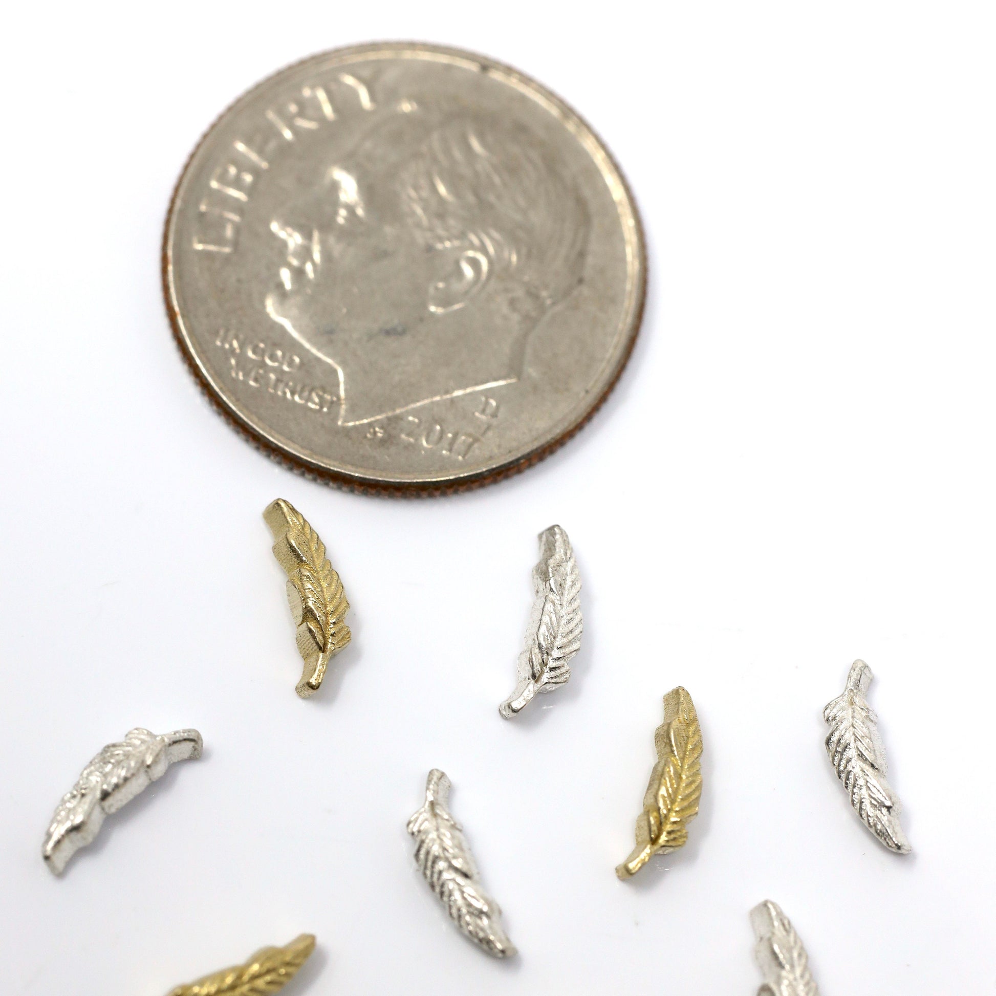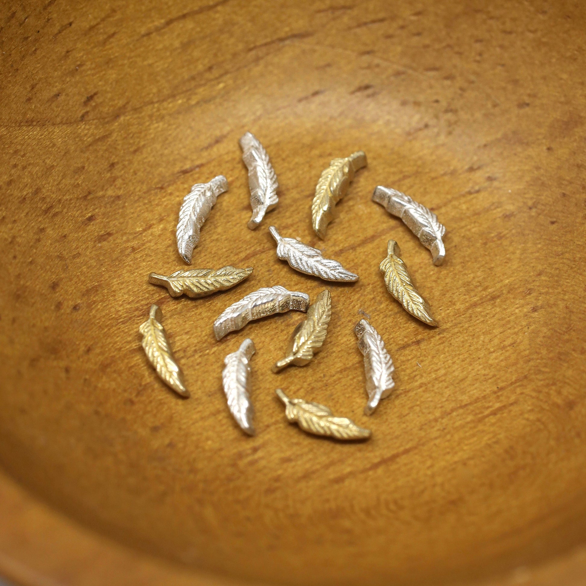 These tiny feather charms/accent pieces are cast in both sterling silver or brass and ready for you to use in your own jewelry making projects.