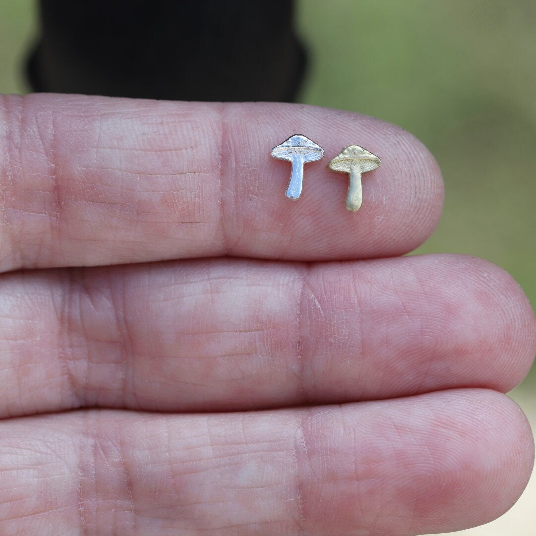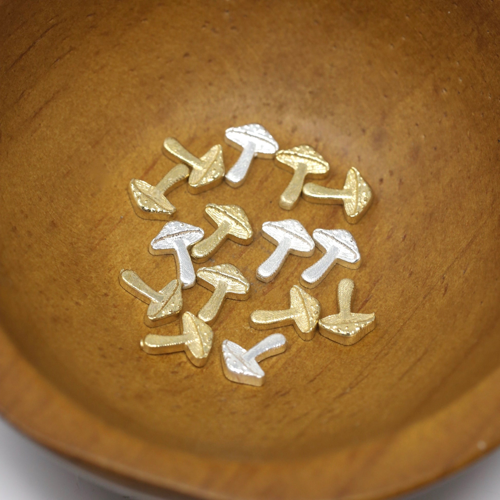 Tiny Mushroom Accent Embellishments in Sterling Silver or Brass - Soldering and Jewelry Making Components
