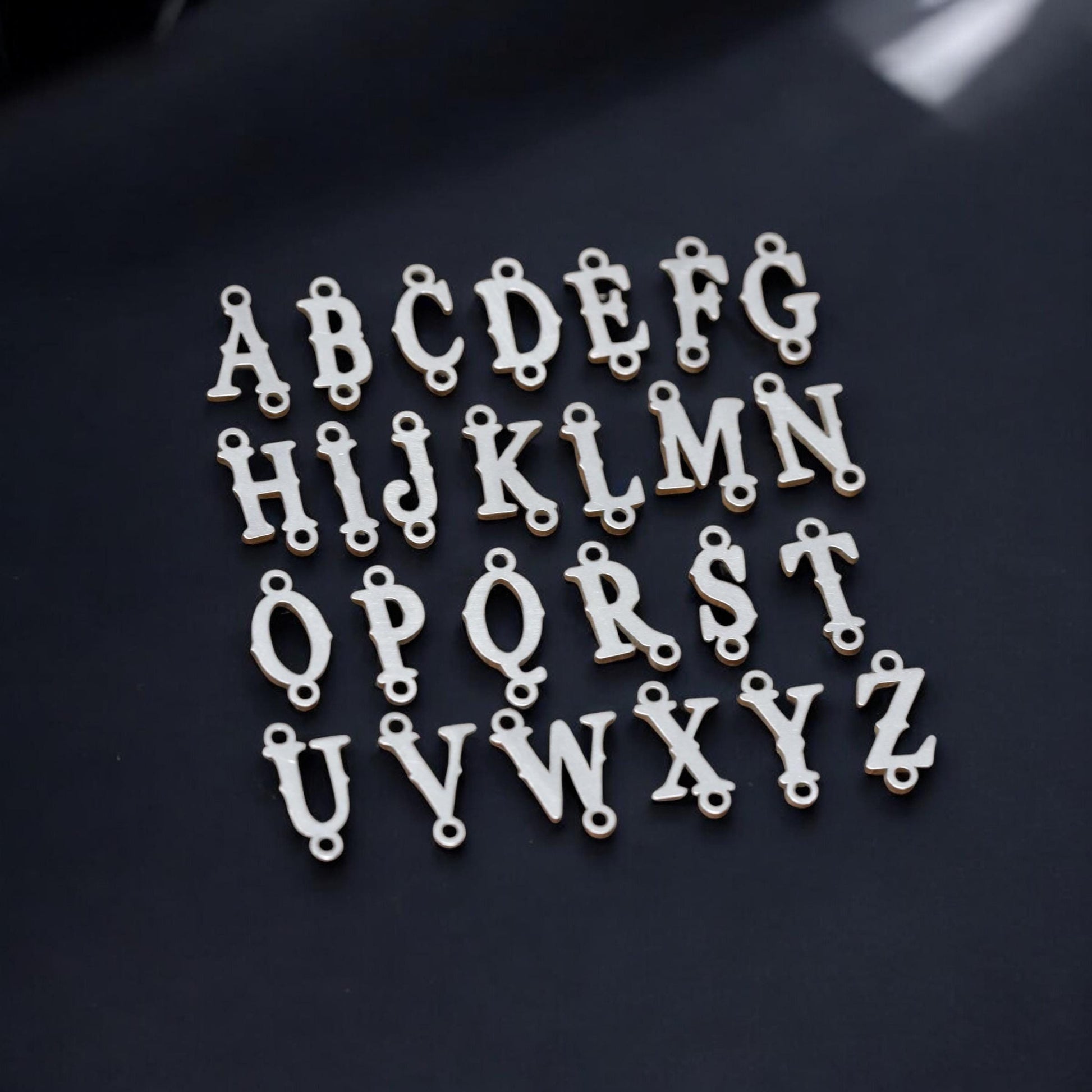 Western Font Alphabet Letter Charms Accent Embellishments Sterling Silver Solderable and DIY Jewelry Making Components, Pendants Connectors
